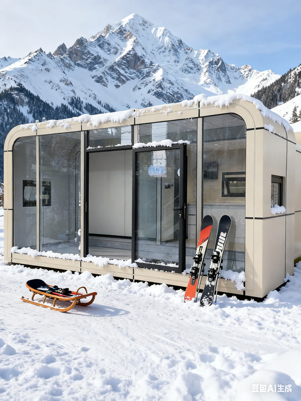 La Apple Capsule House è una soluzione di alloggio innovativa progettata per due persone che cercano un rifugio confortevole e moderno in un ambiente naturale.Questa cabina a prova di vento presenta un disegno minimalista di una stanza con bagno dedicato, fornendo tutti i servizi essenziali per un soggiorno tranquillo.